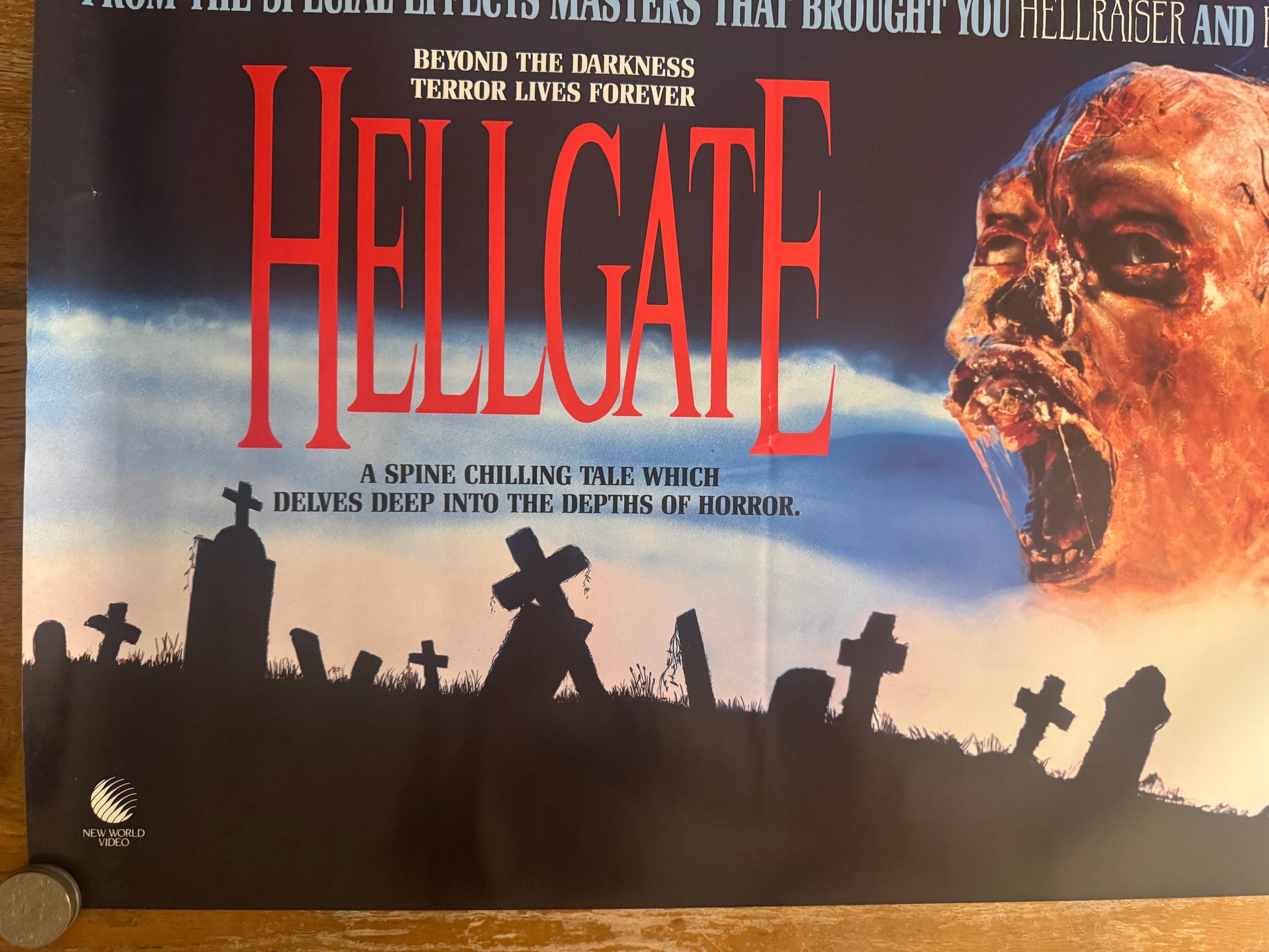 Discover a rare piece of 80s horror memorabilia with the Hellgate (1989) UK video poster. Featuring chilling artwork typical of late-80s VHS horror releases, this collectible showcases the eerie aesthetic and cult appeal of the supernatural slasher film starring Ron Palillo and Abigail Wolcott. Ideal for horror collectors and retro movie fans, this UK version poster captures the essence of the video rental era with bold graphics and classic tagline styling.