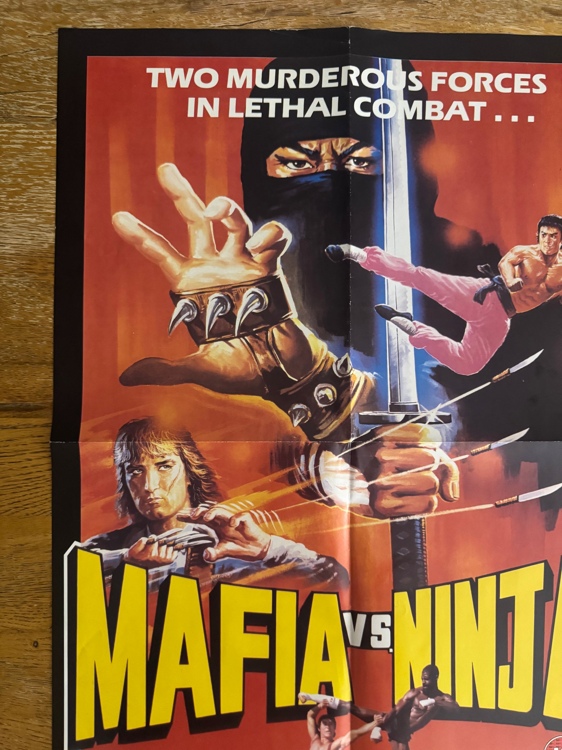 Original Mafia vs Ninja (1985) UK video poster – rare vintage martial arts action collectible. Featuring iconic 80s artwork, this cult classic VHS poster showcases the epic clash between mobsters and ninjas. A must-have for retro kung fu movie fans and collectors of UK video nasties and VHS-era memorabilia.