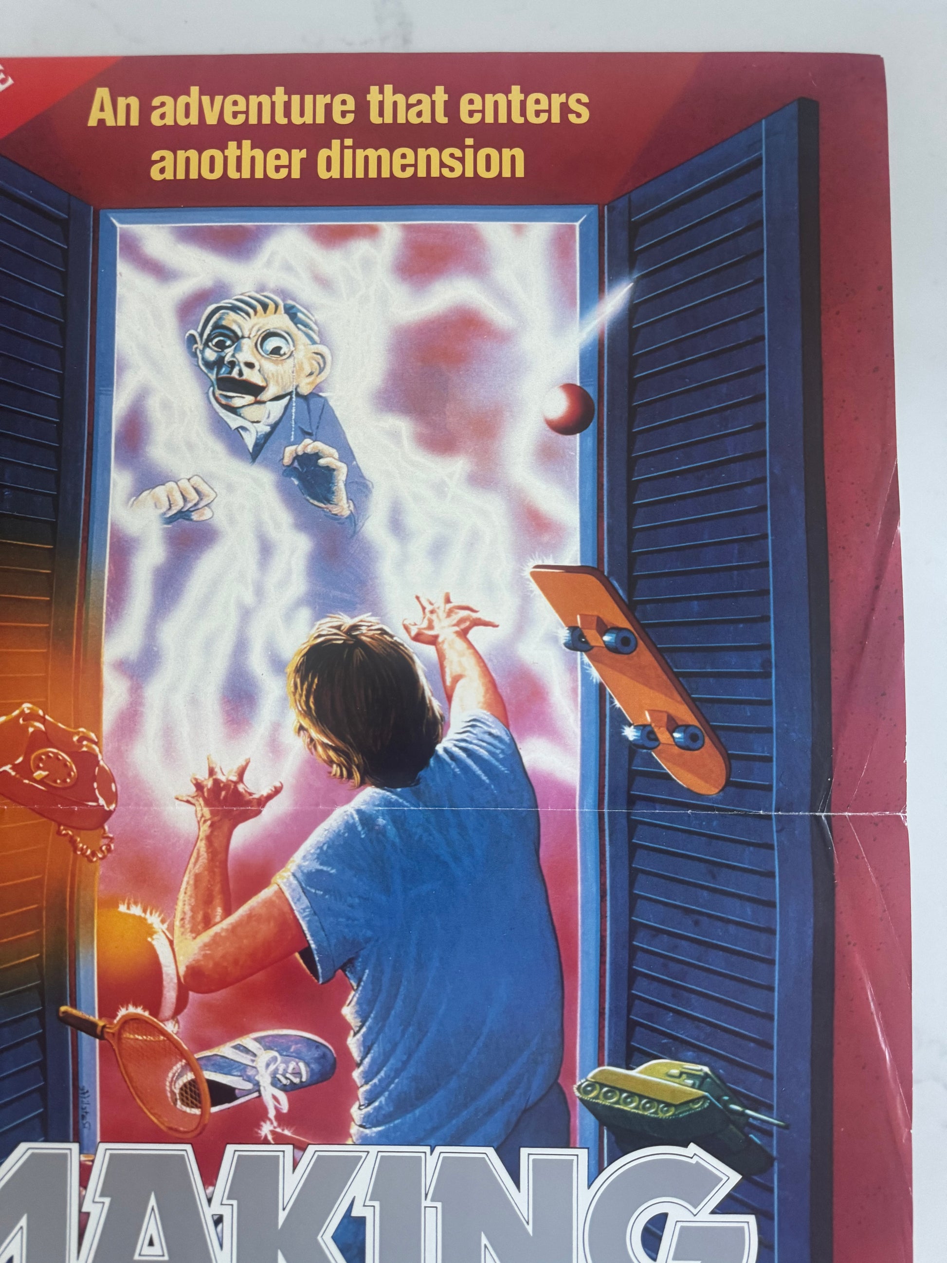 Original 1985 video poster for Making Contact (aka Joey), the cult sci-fi horror film directed by Roland Emmerich. This vintage poster features striking artwork from the UK home video release, showcasing the eerie supernatural themes and 80s retro aesthetic. A must-have collectible for fans of classic VHS-era horror, 1980s sci-fi, and Emmerich’s early work. Ideal for collectors of vintage movie posters and rare film memorabilia.