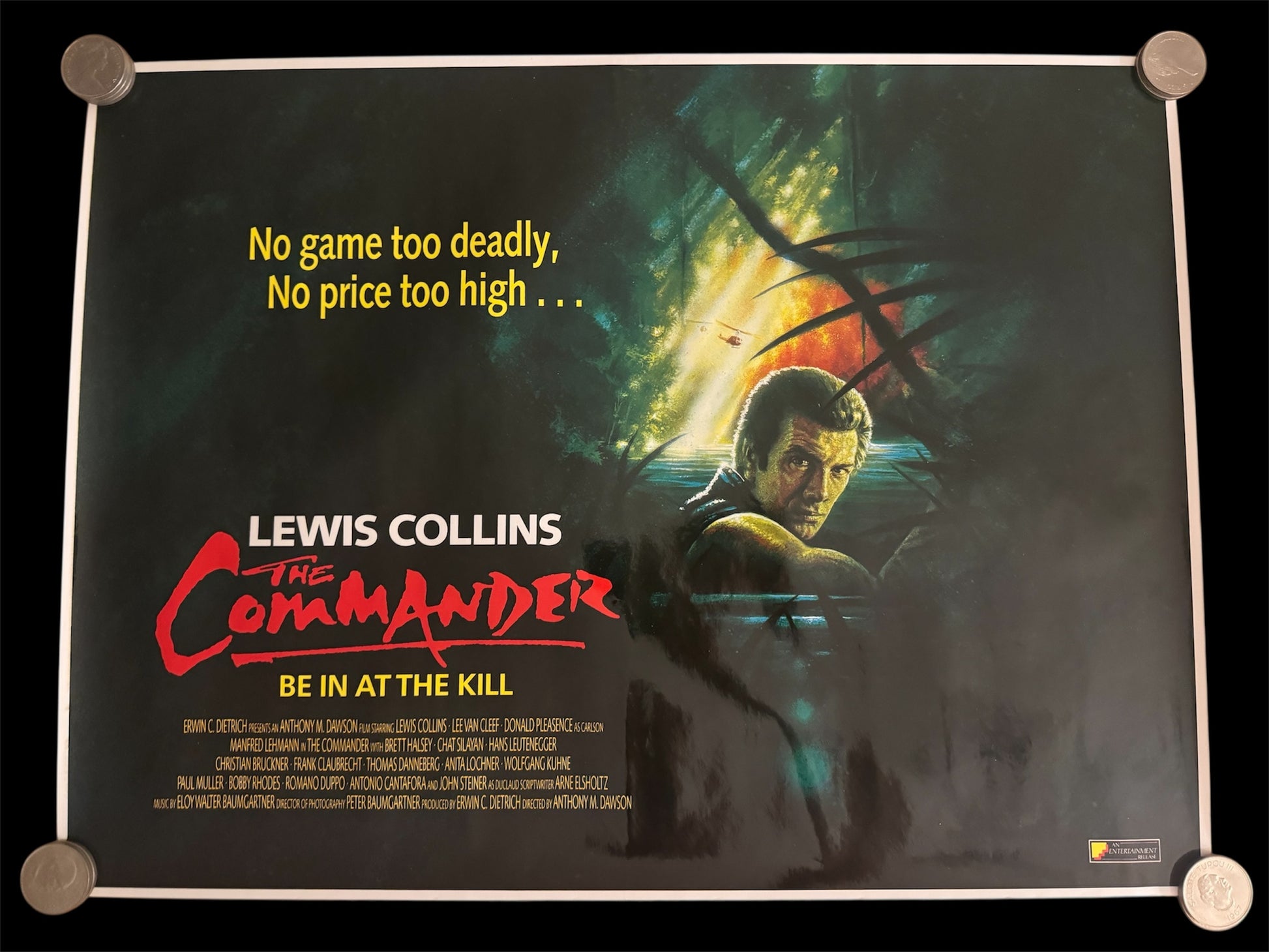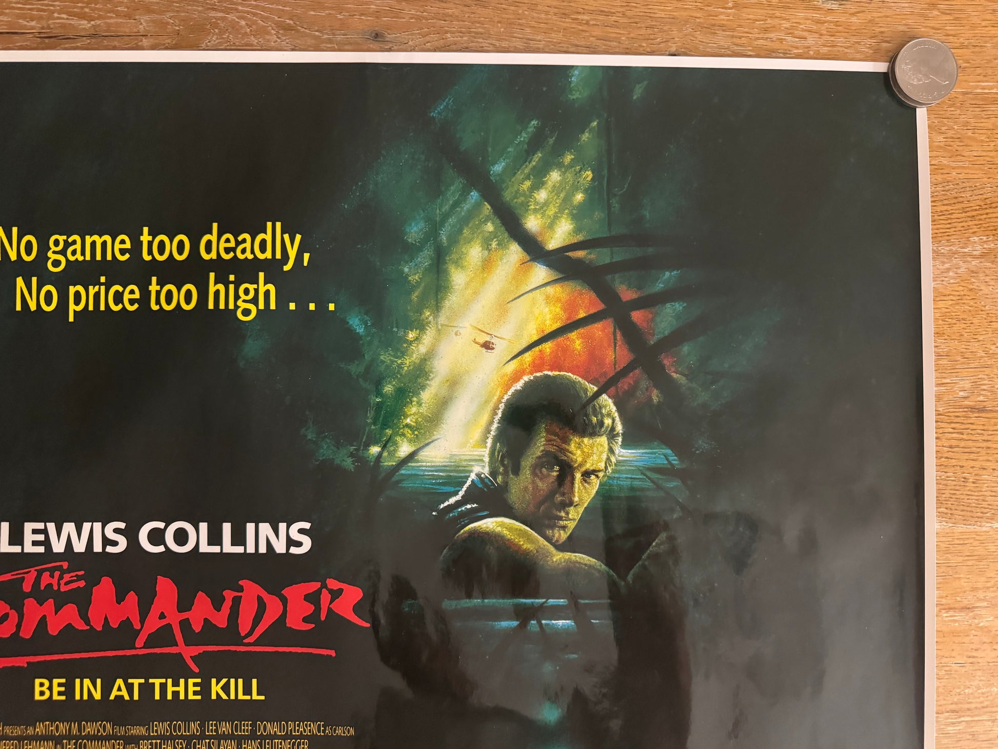 Own a piece of 80s action cinema history with this original UK video poster for The Commander (1988), starring Lewis Collins. This vintage VHS-era poster features bold artwork and explosive design typical of the decade's action genre. A must-have for cult film collectors, retro movie fans, and VHS nostalgia lovers. Perfect for framing in a home theater or man cave. Rare and hard to find in the UK format!